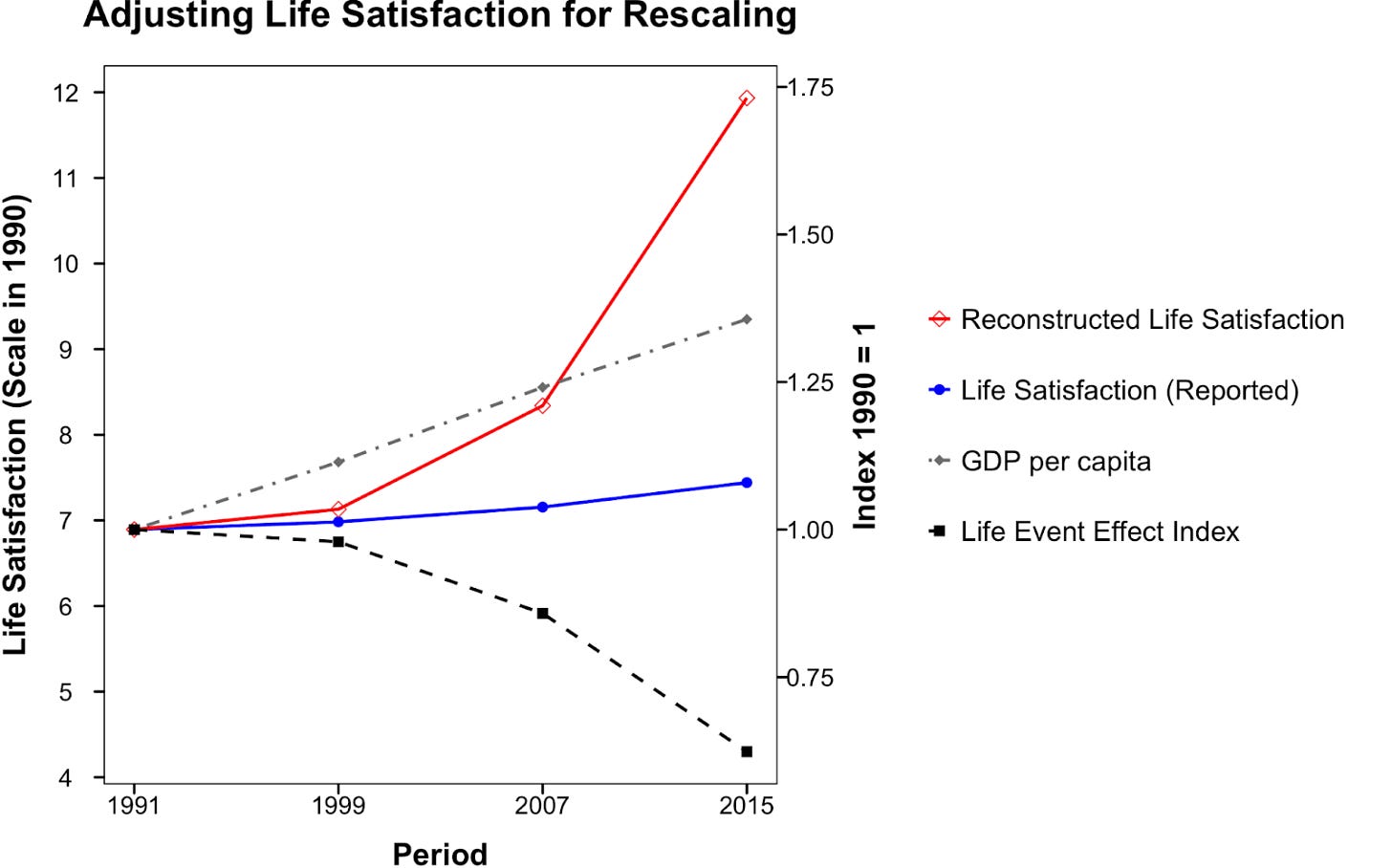 Big news - an improved methodology finds more happiness than previously reported, hidden in the same scale - due to rescaling of the 1 to 10 ladder, into territory equivalent to being beyond the first 10.